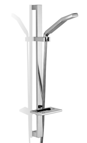 Asta saliscendi completa di: asta rettangolare in metallo; supporti fissi con interasse 700mm; supporto doccia scorrevole in ABS; doccia Premium in metallo con curva; flessibile 1500mm e portasapone rettangolare in ABS.